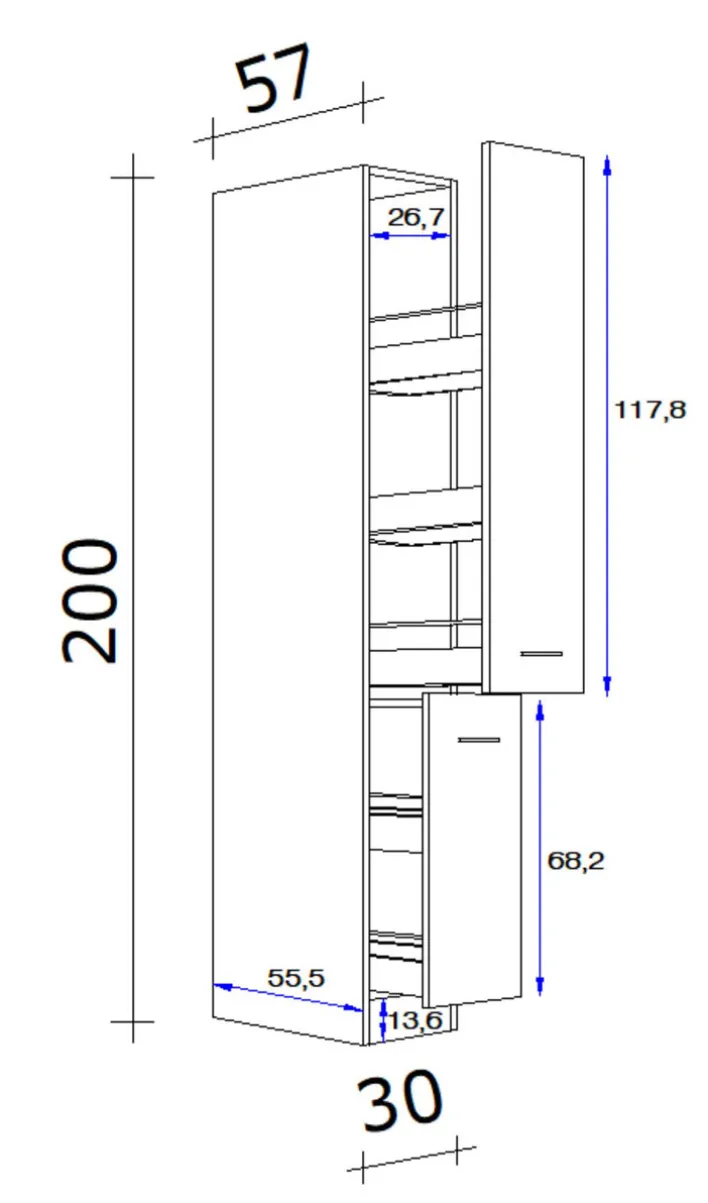 Mit dem modernen Apothekerschrank RALPH in einer eleganten Farbkombination von San Remo Eiche/ Grau zieht in zwei praktischen Auszügen jede Menge Stauraum in der Küche ein.
