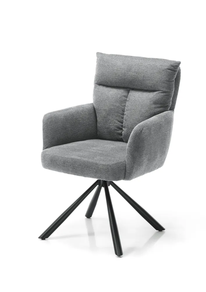 Der Stuhl besticht durch seine hellgraue Farbgebung, die sich harmonisch in verschiedene Wohnstile einfügt. Der Bezug aus 100 % Polyester verleiht dem Stuhl eine angenehme Haptik und ist pflegeleicht. Die festen Armlehnen und der Federkern-Polsteraufbau sorgen für zusätzlichen Komfort. Das schwarze Spinngestell aus Stahl verleiht dem Stuhl nicht nur Stabilität, sondern auch eine moderne Optik. Der Materialmix aus Textil und Metall unterstreicht den zeitgemäßen Stil des Stuhls und macht ihn zu einem vielseitigen Möbelstück für Ihr Zuhause.