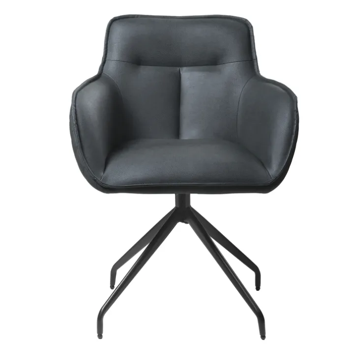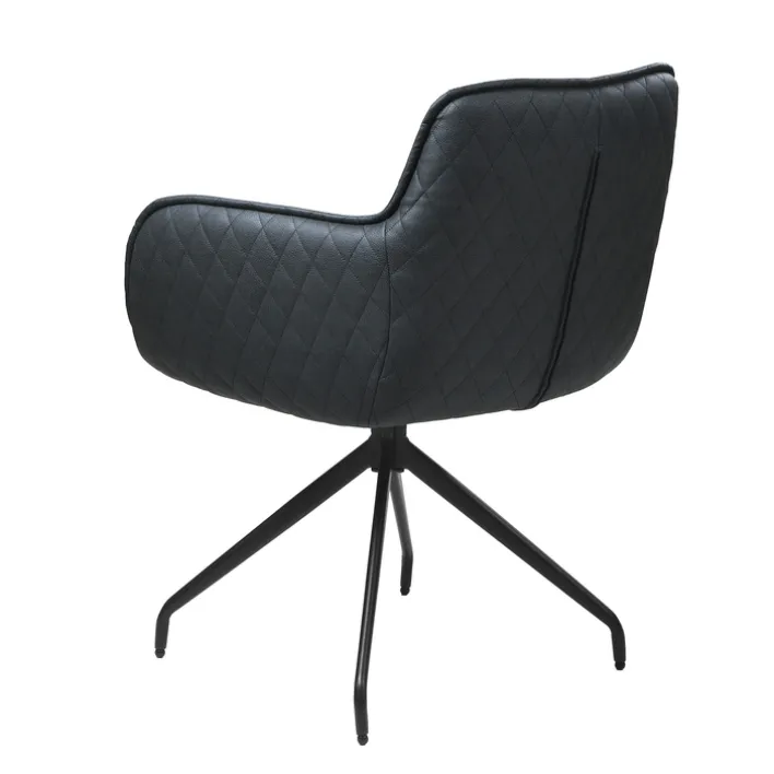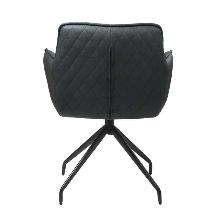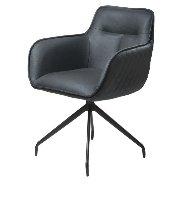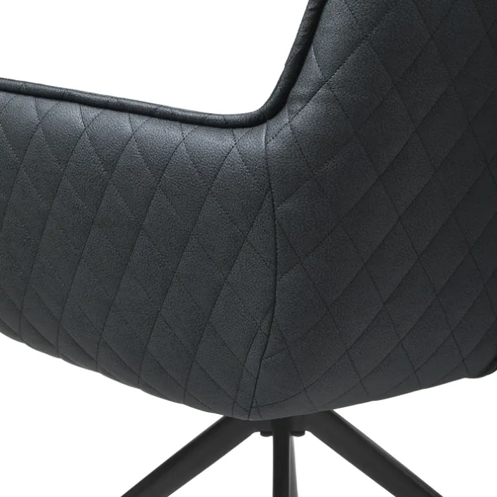 Mit einer Kombination aus schwarz pulverbeschichtetem Metallgestell und einem komfortabel gepolsterten Sitz mit Mikrofaserbezug ist der Armlehnstuhl BALTIMORE robust und strapazierfähig. Der anthrazitfarbene Sitz strahlt mit einem Keder in Stofffarbe, Ziernaht an der Rückenlehne und einer Rautensteppung auf der Außenseite Modernität aus. Beeindrucken kann der Armlehnstuhl jedoch nicht nur optisch. Es bietet zusätzlich einen bequemen Sitz und ist 360° drehbar, wodurch das Aufstehen vom Tisch besonders komfortabel ist.