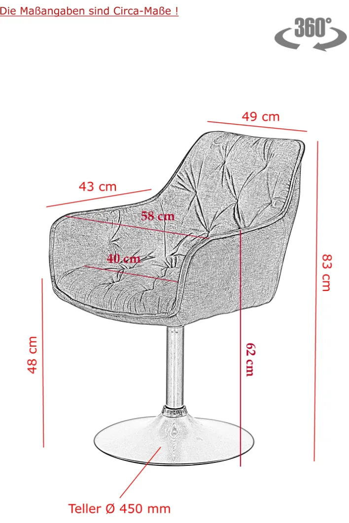 Im Gegensatz zu vielen anderen Stühlen lässt sich dieser zu 360° drehen. Damit verspricht er eine angenehm große und flexible Sitzgelegenheit.Der Armlehnstuhl BRITE hat eine Sitzhöhe von 48 cm und eine Sitzbreite von etwa 43 cm. Das pflegeleichte Polster aus strapazierfähigem Polyester lässt sich mit einem Staubsauger leicht reinigen._x005f_x000D_