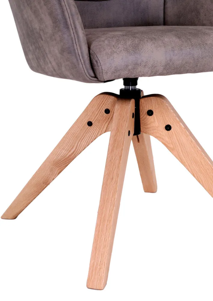 Das Gestell des Stuhls besteht aus massivem Eichenholz, das für seine Stabilität und Langlebigkeit geschätzt wird. Die lackierte Oberfläche verleiht dem Holz eine edle Optik und schützt es vor äußeren Einflüssen. Der Stuhl ist drehbar um 360°, was zusätzliche Flexibilität im Alltag bietet. Mit einer Breite von 62 cm, einer Höhe von 84 cm und einer Sitzhöhe von 49 cm bietet der Stuhl optimalen Komfort. Die Armlehnenhöhe von 70 cm sorgt für eine entspannte Sitzposition.