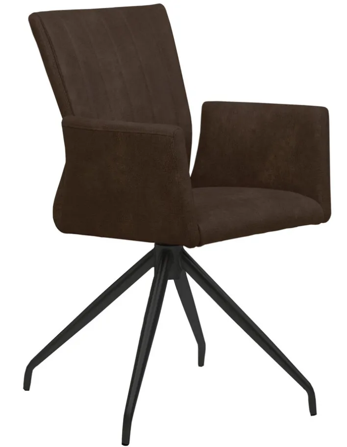 Der Stuhl besticht durch seine elegante braune Microfaser-Oberfläche, die aus 100 % Polyester besteht. Diese synthetische Faser sorgt für eine angenehme Haptik und ist pflegeleicht. Das Gestell aus pulverbeschichtetem Metall in Schwarz verleiht dem Stuhl Stabilität und einen modernen Look. Die drehbare Funktion und die festen Armlehnen erhöhen den Komfort und die Flexibilität im Alltag. Der Stuhl wird im praktischen 2er-Set angeboten, ideal für Esszimmer oder Büro.