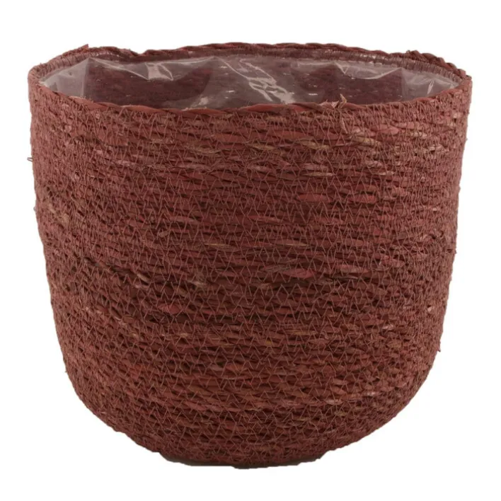 Der aus ausgesuchten Naturmaterialien wie Blättern, Blüten und Gräsern als Geflecht gearbeitete Korb ist im Inneren mit einer robusten Folie ausgelegt. Daher kann der Aufbewahrungskorb auch als Alternative zum Übertopf für Pflanzen verwendet werden. Die Kombination aus geflochtenem Korb und Grünpflanze wirkt besonders harmonisch und sorgt für ein wohnliches Ambiente im Raum. Das Modell ist für Innenräume konzipiert. Der dunkle Farbton des Korbs passt zu jedem Einrichtungsstil.