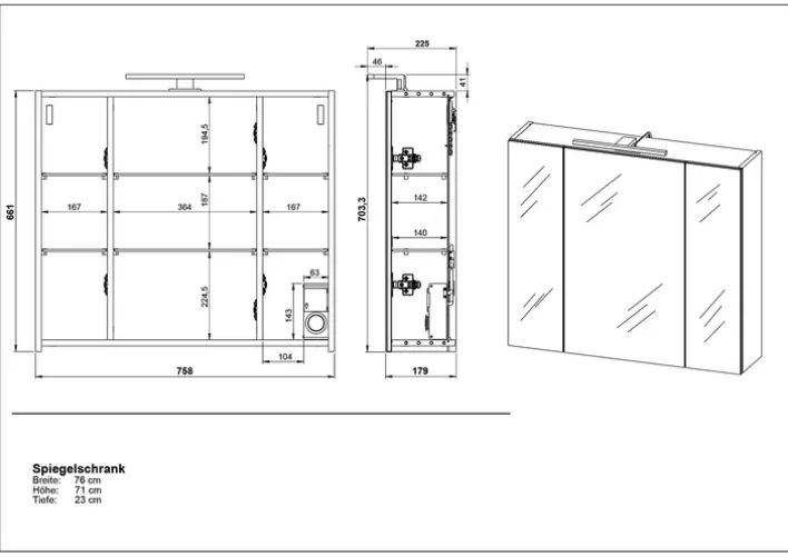 Breite: 34 cmHöhe: 190 cmTiefe/Ausladung: 34 cmStellmaß: 34x190x34