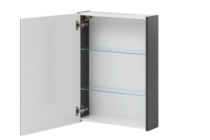 Der moderne Bad Spiegelschrank aus der Serie COSMO überzeugt durch sein elegantes Design und seine funktionalen Eigenschaften. Mit einer Breite von 50 cm, einer Höhe von 70,7 cm und einer Tiefe von 15,8 cm bietet er ausreichend Stauraum für Ihre Badezimmerutensilien. Der Schrank ist in einem stilvollen Grau gehalten und verfügt über eine Spiegelfront aus hochwertigem Spiegelglas, die nicht nur praktisch, sondern auch ästhetisch ansprechend ist.
