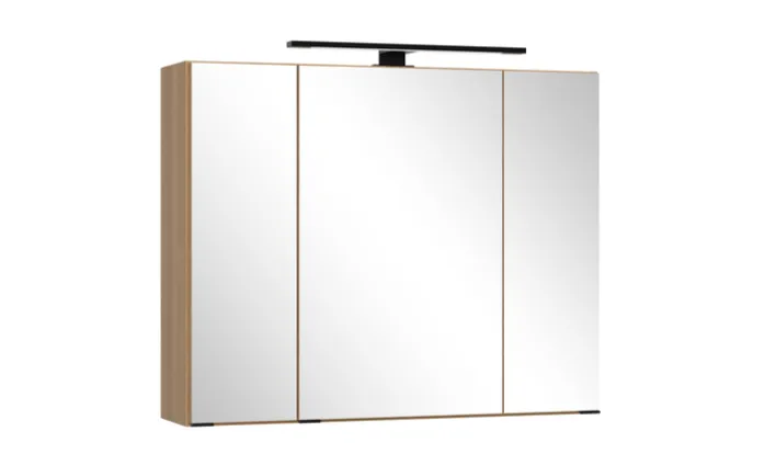 Der Bad Spiegelschrank MENZO vereint Funktionalität und modernes Design. Mit einer Breite von 80 cm, einer Höhe von 64 cm und einer Tiefe von 20 cm bietet er ausreichend Stauraum für Ihre Badezimmerutensilien. Die drei Türen mit Spiegelfronten aus hochwertigem Spiegelglas verleihen dem Schrank eine elegante Optik und sorgen für eine helle und freundliche Atmosphäre im Raum.