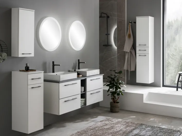 im Lieferumfang enthalten PORTA: 1 Bad-Unterschrank lt. AusstattungLieferhinweise PORTA: Alle Maße sind circa Angaben. Geringfügige Abweichungen sind möglich.Die Lieferung erfolgt je nach Artikelart frei Verwendungsstelle, frei Bordsteinkannte auf einer Einwegpalette oder als Paket. Bitte trage Sorge dafür, dass am vereinbarten Speditionsliefertermin die Ware entgegengenommen werden kann.Lieferhinweis: ohne DekorationLieferzustand: zerlegt