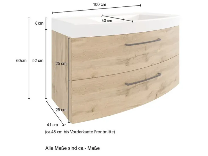 Breite: 100 cmHöhe: 59 cmTiefe/Ausladung: 50 cm