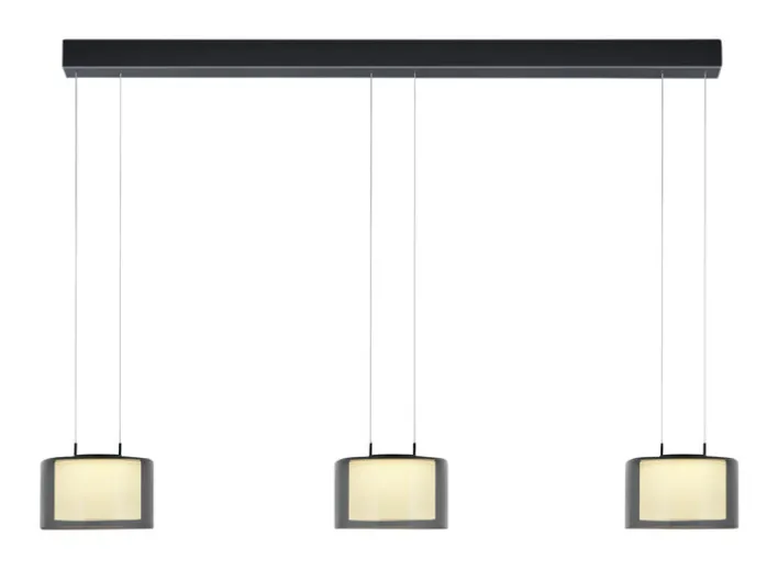 Drei LED-Leuchtmittel sind in der LED Pendellampe GRAND SMOKE von BANKAMP fest installiert. Zusammen haben sie einen Energieverbrauch von 66 Watt und eine Lichtleistung von 6000 Lumen. Die BANKAMP LED Pendellampe GRAND SMOKE ist dimmbar, sodass sich ihre Lichtfarbe zwischen 2200 und 2700 Kelvin variieren lässt. Die Brenndauer beträgt rund 35.000 Stunden. Der adrette Einrichtungsgegenstand ist modern gestaltet. Er findet über dem Esstisch oder dem Wohnzimmertisch einen idealen Platz.