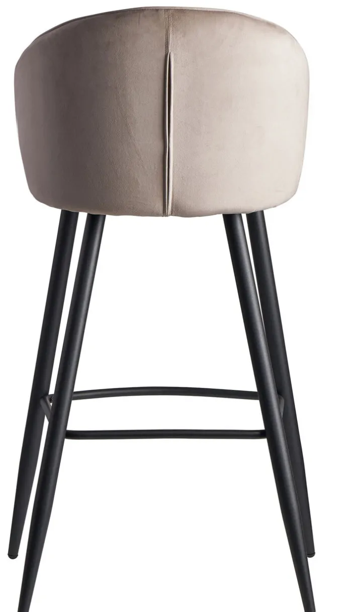 Der Barhocker mit Rückenlehne in der Farbkombination Schwarz/ Beige ist mit weichem Samt bezogen. Er vereint einen eleganten Look mit hohem Sitzkomfort und ist ein Must-Have für die Hausbar.