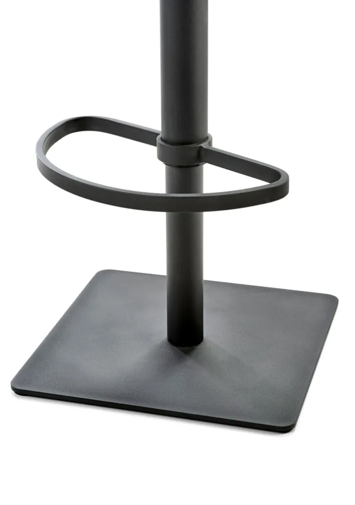 Der Bar-/Tresenhocker ist mit Kunstleder im Farbton Schwarz bezogen, welches im Vintagestil gestaltet ist. Perfekt dazu passt das graue Gestell mit einer großen Bodenplatte als Fuß, an dem Gestell befindet sich ein kleiner Tritt auf dem man bequem die Füße aufstützen kann. Um ihn perfekt auf Ihre Größe anzupassen, kann man den Hocker in der Höhe verstellen. Die Sitzschale ist zudem noch rundum drehbar um ein Blick in jede Richtung werfen zu können und bietet Ihnen mit der bequemen Rückenlehne einen perfekten Sitz an der Bar.