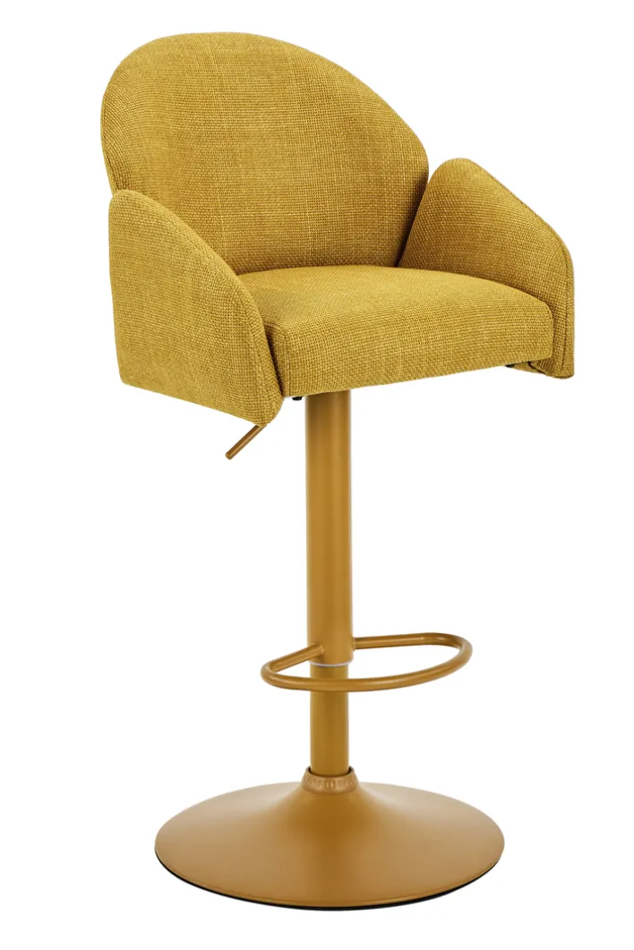 Der Barhocker aus der Serie POLLY vereint modernes Design mit praktischen Funktionen. Der Hocker ist in einem ansprechenden Gelb gehalten, das sowohl in dem Trompetengestell als auch im Textilmaterial zur Geltung kommt. Der Bezug besteht aus einem strapazierfähigen Mikrofaser-Webstoff, der für Komfort und Langlebigkeit sorgt.