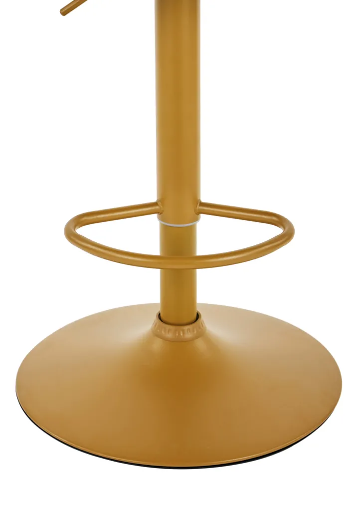 Die gepolsterte Sitzfläche und die festen Armlehnen bieten zusätzlichen Komfort, während die 360°-Drehbarkeit und die Höhenverstellbarkeit von 96 bis 117 cm Flexibilität und Anpassungsfähigkeit gewährleisten. Das Gestell des Barhockers ist aus pulverbeschichtetem Metall gefertigt und verfügt über ein stabiles T-Gestell.