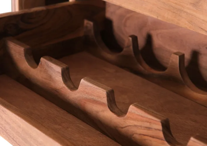 Die Kombination aus Holz und Metall verleiht dem Barschrank eine zeitlose Eleganz, die sich harmonisch in verschiedene Einrichtungsstile einfügt.
