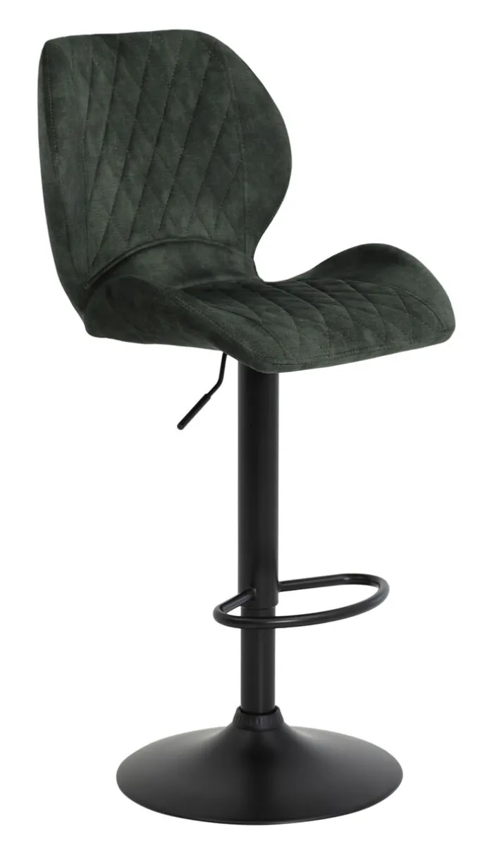 Der elegante Barstuhl LAILA mit einem Bezug in der Farbe anthrazit überzeugt mit seinem stilvollen Design mit hoher Rückenlehne, Fußstütze und komfortabler Sitzfläche. Er passt mit seinen schwarzen Oberflächen in den modern eingerichteten Thekenbereich im Wohn- oder Esszimmer. Auch für die Küche ist er sehr gut geeignet. Durch die Höhenverstellung ist der drehbare Barstuhl genau anpassbar. Die weiche Polsterung und der hautsympathische Bezug sorgen für einen hohen Sitzkomfort.