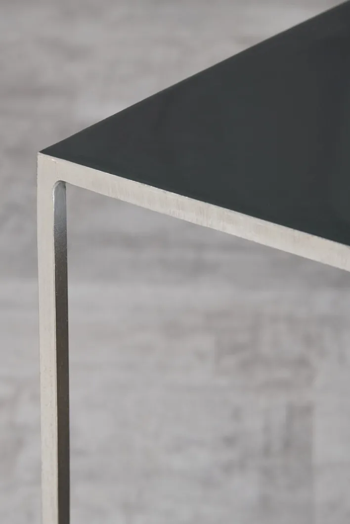 Eine Ablagefläche, wo auch immer sie gerade gebraucht wird – das ist der Beistelltisch FRELA. Er besteht aus drei Tischen in verschiedenen Größen, die Höhen sind 35, 40 und 45 cm. Sie bestehen komplett aus Metall und sind somit absolut robust, pflegeleicht und langlebig. Die Gestelle sind silberfarbig und die Platten schwarz lackiert.