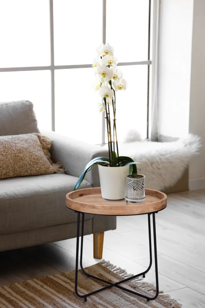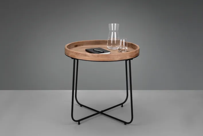 Das Möbel ist modern, attraktiv und praktisch. Die runde Platte verfügt über einen kleinen Außenrand, sodass abgestelltes Geschirr nicht herunterrutschen kann. Gerade bei einem größeren Sofa lohnt es sich, außer dem Couchtisch einen zusätzlichen Beistelltisch zu verwenden, damit man, wenn man sich an anderer Stelle auf das Sofa setzt, Gläser und Tassen bequem hier abstellen kann. Mit seiner braun-schwarzen Optik passt der Tisch zu einer allgemeinen Holz-/Metall-Zimmereinrichtung.