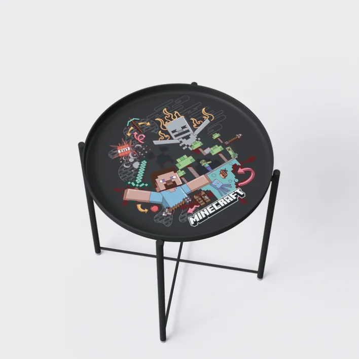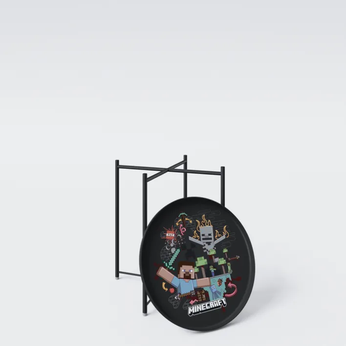 Besonders raffiniert: Die runde Tischplatte lässt sich im Handumdrehen abnehmen und fungiert somit bei Bedarf als stylisches Tablett für Snacks und Getränke! MINECRAFT ist 51 cm breit, 47 cm tief und ebenfalls 47 cm hoch. Hergestellt wurde der Beistelltisch aus robustem Metall: Er hält bei aufregenden Spielerunden also eine Menge aus! Kids werden MINECRAFT definitiv lieben, zumal die kompakten Maße in nahezu jedem Kinderzimmer einen idealen Platz finden. Eine tolle und außergewöhnliche Überraschung mit Wow-Effekt!