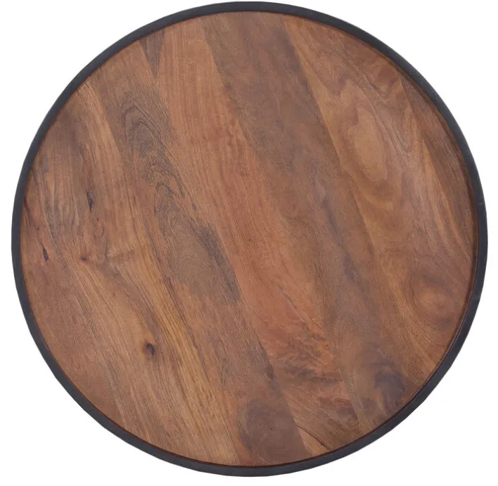 Mit einem Durchmesser von 80 cm bietet der aus Metall und edlem Mangoholz gefertigte QUARTIER Beistelltisch RORY viel Platz für Zeitschriften, Getränke und Snacks.