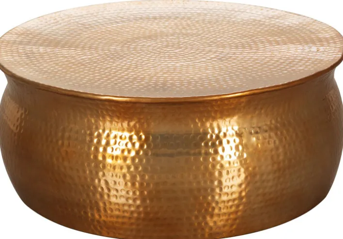 Der Beistelltisch macht es leicht, im heimischen Wohnbereich Akzente zu setzen. Mit seiner einzigartigen Hammerschlag-Optik und seinem goldfarbenen Glanz steht der Tisch überall im Mittelpunkt.