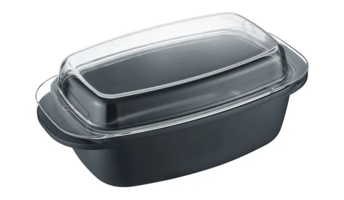 Der rechteckige Bräter von Berndes mit Induktionsboden eignet sich für alle gängigen Herdarten. Er ist ideal, um das Gargut zunächst auf der Kochplatte anzubraten und hinterher im Ofen zu schmoren. Seine hochwertige Quarzversiegelung ist PFAS- und PTFE-frei und ermöglicht eine gesunde Zubereitung von Lebensmitteln. Der große Glasdeckel erlaubt, den Garvorgangs durchgängig zu kontrollieren. So lässt sich einfach erkennen, wann das Gericht fertig ist.