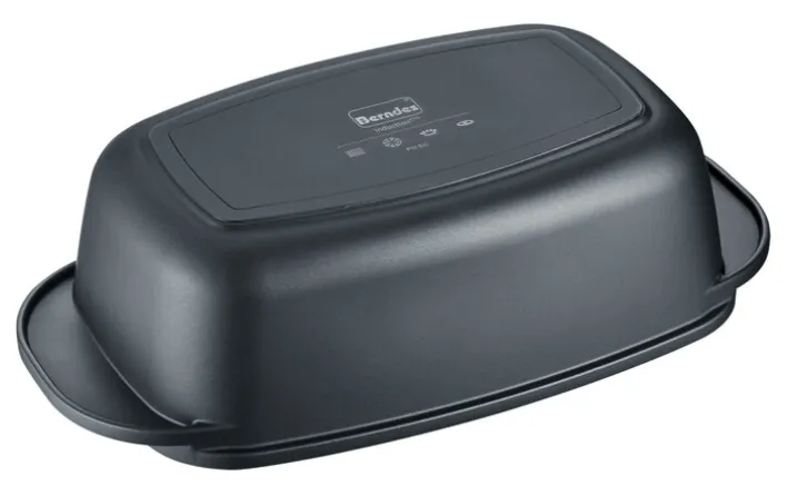 Der Bräter ist aus hochwertigem Aluminium gefertigt. Der transparente Deckel des Bräters besteht aus nahezu bruchfestem Sicherheitsglas. Der leicht zu reinigende Bräter ist für alle Herdarten und mit oder ohne Deckel auch für den Backofen geeignet.