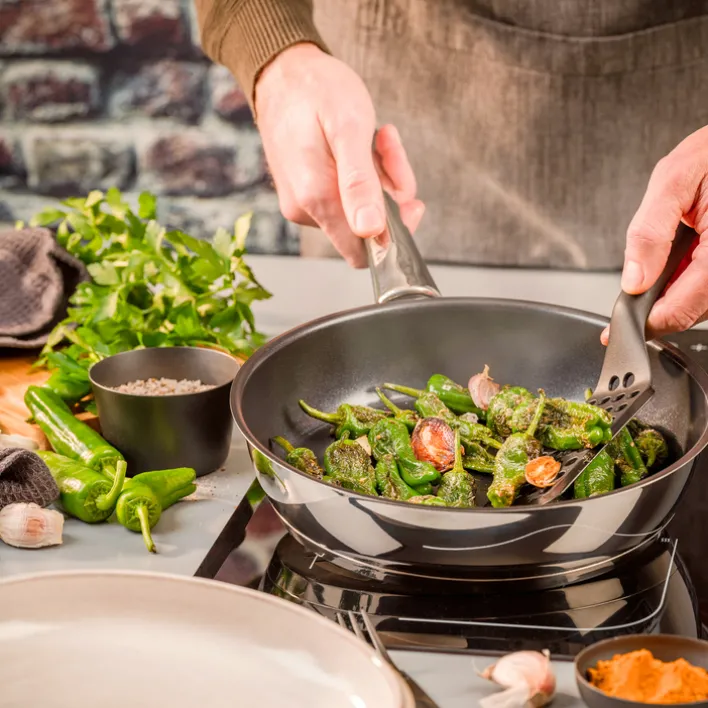 Mit der Berndes Schmorpfanne INJOY B.NATURE aus Aluminium und Edelstahl mit 20 cm Durchmesser ist gesundes, fettarmes Kochen und Braten ganz einfach. Sie lässt sich zudem auf jeder Herdart verwenden und ist zudem bis zu 250 °C ofenfest.Die Berndes Schmorpfanne INJOY B.NATURE besteht aus nickelfreiem Spezial-Edelstahl und ist mit einer innovativen Quarz-Antihaftversiegelung versehen. Frei von PFAS und anderen Schafstoffen ist die Pfanne perfekt für eine gesunde und nachhaltige Zubereitung. Darüber hinaus lässt sie sich mühelos in der Spülmaschine reinigen. Der ergonomische Edelstahl-Kunststoffgriff sorgt für einen sicheren Halt, während der nicht wölbende InductionPLUS-Kapselboden schnell aufheizt und eine gleichmäßige Wärmeverteilung ermöglicht.