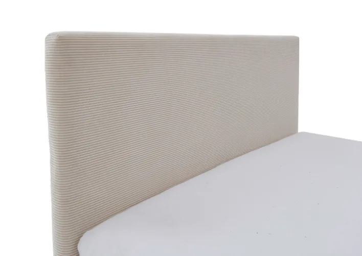 Das beige 120 x 200 cm große Bett COOL kommt ohne Matratze aber inklusive Lattenrost. Der robuste Cord-Bezug in hellem Beige fügt sich leicht in Schlafzimmer und andere Räume ein, praktisch sind zudem auch die seitlich in den Stoff eingearbeiteten Taschen – darin lassen sich kleinere Utensilien aufbewahren, selbst wenn kein Nachttisch in der Nähe steht.