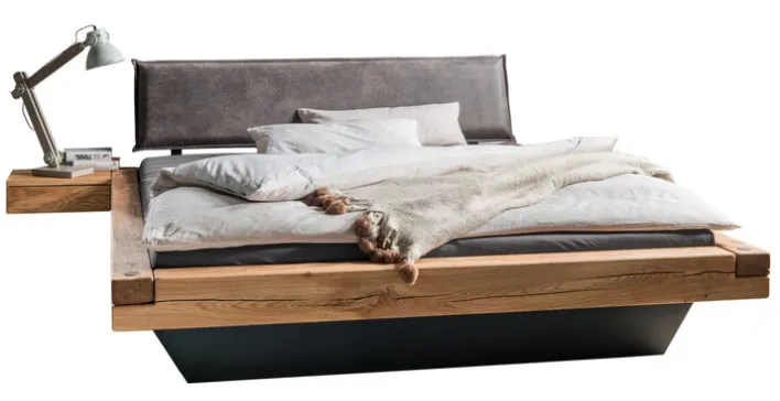 Das Bett aus der ESPERA-Serie vereint modernes Design mit hochwertigen Materialien und bietet eine großzügige Liegefläche von 180 x 200 cm. Die Kombination aus massivem Wildeichenholz und anthrazitfarbenem Textil verleiht dem Bett einen ansprechenden Industrial-Stil. Die natürliche Holzmaserung der Eiche sorgt für eine warme und einladende Atmosphäre im Schlafzimmer.