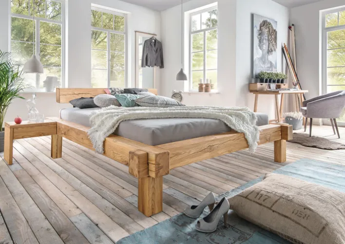 Das Bettgestell ESPERA besticht durch seine natürliche Eleganz und robuste Bauweise. Gefertigt aus hochwertigem Eichenholz, präsentiert es sich in einem warmen Braunton, der als Wildeiche natur bezeichnet wird. Die geölte Oberfläche unterstreicht die natürliche Maserung des Holzes und verleiht dem Bettgestell eine zeitlose Ästhetik. Mit einer Breite von 204 cm, einer Höhe von 40 cm und einer Länge von 224 cm bietet es eine großzügige Liegefläche von 180 x 200 cm, die ideal für erholsamen Schlaf ist.