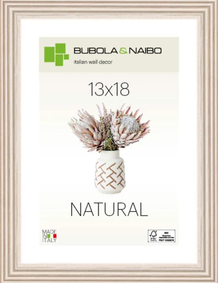 Der Bilderrahmen TOSCA ist für Bilder im Format 13 x 18 cm geeignet. Seine Umrandung ist weiß. Er selbst ist 15,8 cm breit und 20,8 cm hoch. Zudem besteht der rechteckige Rahmen aus Holz.