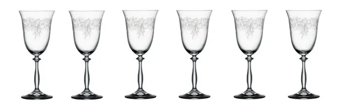 Dieses Set umfasst sechs Rotweingläser der Serie ROMANCE. Mit einer Gesamthöhe von 22 cm sind die hübsch verzierten Trinkgefäße der Blickfang einer festlich gedeckten Tafel. Der geschmackvoll geformte Stiel macht den Trinkgenuss auch zu einem haptischen Erlebnis und regt zum Anstoßen mit anderen Gästen an.
