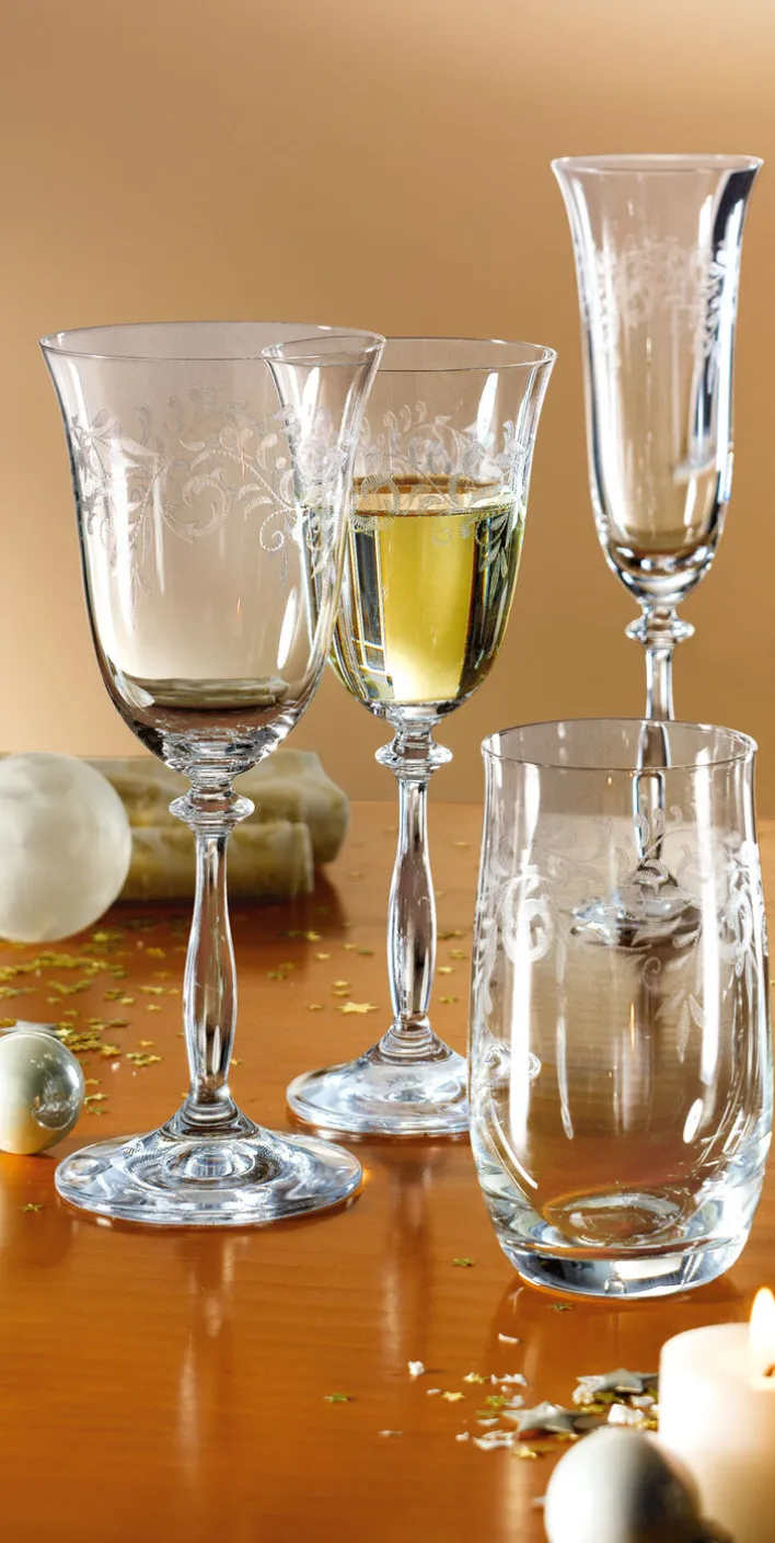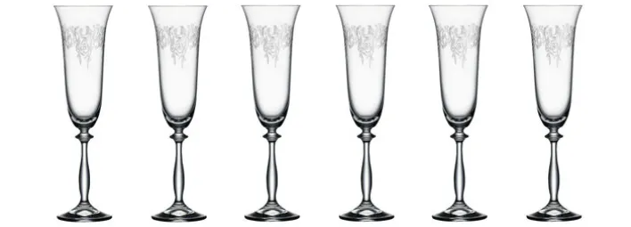 In diesem Set sind sechs der wohlgeformten Sektgläser ROMANCE enthalten. Hersteller BOHEMIA SELECTION bietet in dieser Reihe außerdem verschiedene gleichartig designte Wein- und Trinkgläser für einen perfekt gedeckten Festtagstisch an. Ebenso wie die 25 cm hohen Sektgläser können auch alle anderen Modelle bedenkenlos in der Spülmaschine gereinigt werden.