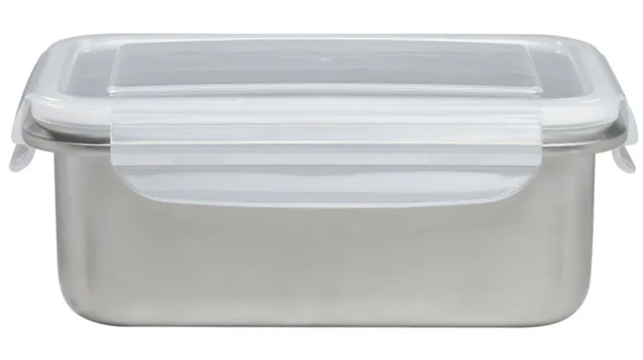 Die Vorratsdose hat eine rechteckige Form mit sanft abgerundeten Ecken. Sie besteht aus einer Kombination aus Silikon, Polypropylen und Metall und bietet eine hervorragende Stabilität. Der Cip-Verschluss lässt sich einfach betätigen und schließt die Dose dicht ab. Sie bietet sich beispielsweise für die Aufbewahrung von bereits fertig gekochten Speisen an. Da sie transparent ist, lässt sich der Inhalt gut erkennen, ohne dass sie geöffnet werden müsste. Darüber hinaus ist die Vorratsdose sehr pflegeleicht. Sie kann nach der Anwendung einfach auseinandergenommen und in der Spülmaschine gereinigt werden.