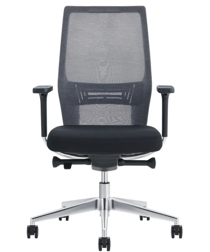 Beide Armlehnen an diesem Bürostuhl bieten Bequemlichkeit. Ohne die Armfreiheit einzuschränken. Der Rücken wird im Sitzen gut von hinten durch das Netz belüftet. So ist ermüdungsarmes Arbeiten im Büro oder Homeoffice gewährleistet. Dies wird auch von der besonders hohen und breiten, teilflexiblen Rückenlehne unterstützt. Geliefert wird das Modell in vormontierten Teilen. Am Ort der Nutzung ist es mit wenigen Handgriffen einsatzbereit. Im verstellbaren Stuhlbein befindet sich eine Druckfeder.