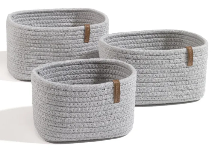 Der 17 cm breite und 11 cm tiefe casaNOVA Aufbewahrungskorb hat eine Höhe von 12 cm. Er besteht aus einem grauen Mischgewebe aus Baumwolle, Polyester und Polyurethan (PU). Mit seiner Seiloptik ist der Dekokorb auch eine optische Bereicherung.