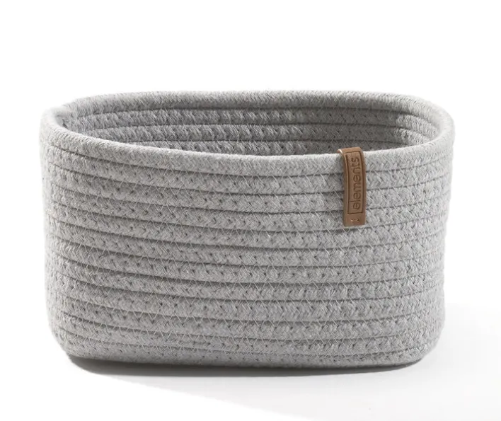 Der in Seiloptik gestaltete casaNOVA Aufbewahrungskorb besteht aus einem grauen Mischgewebe, gefertigt aus Baumwolle, Polyester und Polyurethan (PU). Der Dekokorb ist 20 cm breit, 12 cm tief und hat eine Höhe von 15 cm.