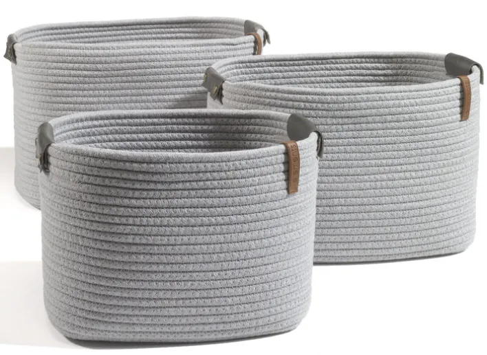Weich und heimelig mutet der graue Aufbewahrungskorb aus Baumwolle, Polyester und Polyurethan an. Wie aus Seilen gewickelt erscheint der Korb mit den Kunstlederbeschlägen. Der helle Grauton fügt sich in Interieurs im skandinavischen Stil genauso angenehm ein wie in kühl bis minimalistisch eingerichtete Wohnräume und Zimmer im Vintage-Stil. Mit seiner Höhe von 26 Zentimetern fasst der Dekokorb von Zeitschriften über Bücher bis hin zu Strickarbeiten und Kinderspielzeug alles. Das ist ein unverzichtbarer Ordnungshelfer!