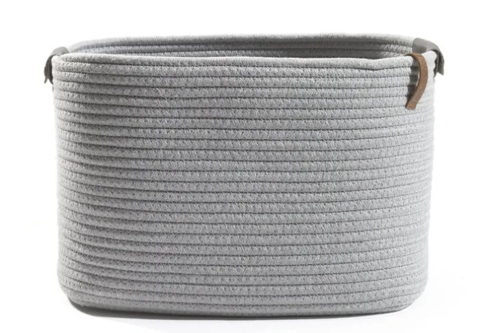 Der aus einem robustem Mischgewebe gefertigte Korb ist leicht zu pflegen. Außerdem sorgt die Kombination aus Baumwolle und Polyester sowie Polyurethan für ein langes Leben des optisch ansprechenden Aufbewahrungskorbes, der im Laufe der Zeit für viele Zwecke verwendbar ist. Sowohl von außen als auch von innen erinnert das Design des grauen Dekokorbs an Seile, die wie bei einer speziellen Webtechnik arrangiert sind.