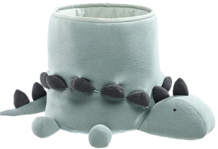 Der 30 cm lange und 40 cm breite Aufbewahrungskorb fällt durch seinen hellblauen Farbton sowie sein lustiges Dino-Motiv auf. Er ist komplett aus 100 % Baumwolle gefertigt und Dekobehälter sowie Kuscheltier in einem.