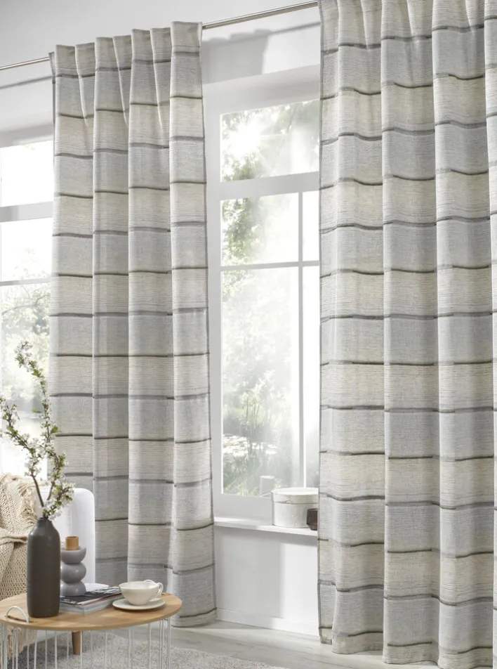 Der gestreifte, moderne casaNOVA Dekoschal ist aus 5 Prozent Baumwolle, 85 Prozent Polyester und 10 Prozent Polyacryl gewebt. Dieser Material-Mix eignet sich für die Waschmaschine. Sobald sich Verschmutzungen auf dem Stoff zeigen, ist die zeitlose Gardine bei maximal 30 °C waschbar und wirkt anschließend wieder wie neu.