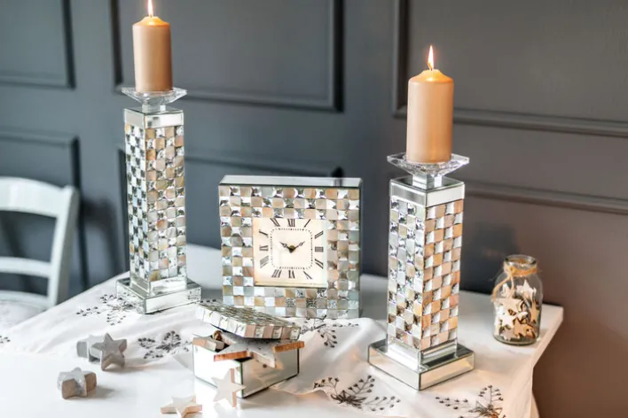 Der casaNOVA Kerzenständer SHELL ist 42 cm hoch. Er besteht aus Naturmaterialien und schimmert sowohl silberfarbig als auch perlmuttartig. Diese besondere Wirkung wird erzielt, wenn das Licht die zahllosen kleinen Platten der Oberfläche trifft. Der Ständer steht auf einem kräftigen Sockel aus Glas und bietet am oberen Ende einen schicken Kerzenständer, der ebenfalls aus Glas besteht. Insgesamt wirkt der Ständer ausgesprochen elegant. Er ist ungewöhnlich und zieht die Blicke auf sich. Zusätzlich gibt es weitere Produkte dieser Serie, unter anderem eine auffällig schöne Tischuhr. Auch ist der Ständer in einer weiteren Ausführung erhältlich. Zusammengestellt ergibt sich ein wunderschönes, seltenes Ensemble. #porta #portamöbel #colourfulgifts #colourfulliving