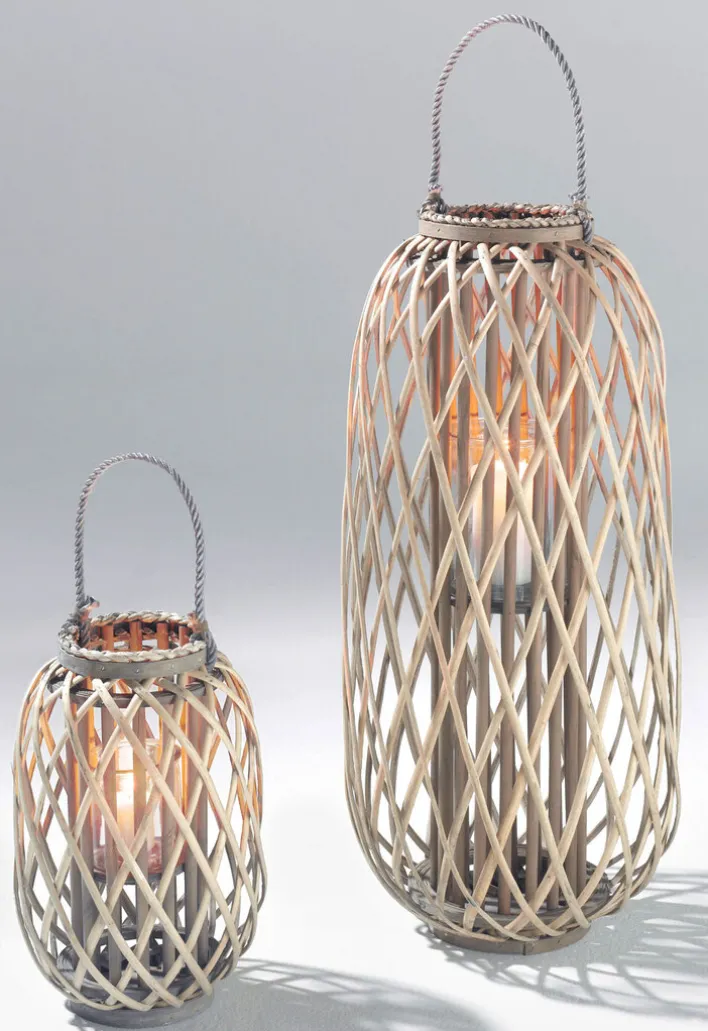 Die Laterne INDIA von casaNOVA sorgt für eine stimmungsvolle Beleuchtung mit orientalischem Flair. Sie eignet sich zum Hinstellen oder Hängen und ist immer ein schöner Blickfang. Mit einer Höhe von 75 cm und einem Durchmesser von 28 cm lässt sich die Laterne INDIA auf der Terrasse und dem Balkon oder auch im Innenbereich Ihrer Wohnung nutzen. Der Glaseinsatz hat eine Größe von 13,5 x 17 cm und bietet einen windgeschützten Platz für eine Kerze Ihrer Wahl. Den äußeren Korpus der Laterne bildet ein hellbraunes Geflecht aus Weide und Holz. Diese Naturmaterialien machen die Laterne INDIA zu einem besonderen Dekoobjekt.