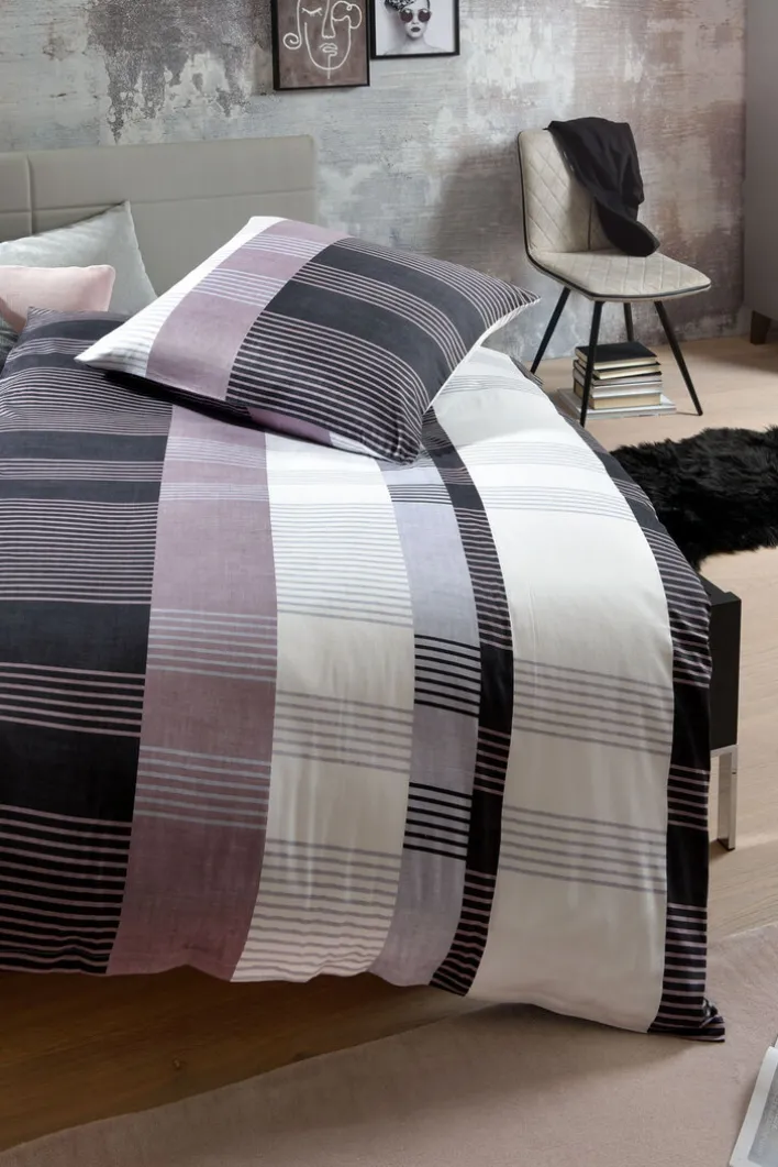 Das moderne casaNOVA Satin-Bettwäsche-Set SOFIA enthält Kissen- und Bettbezug mit Reißverschluss und ist Standard-100-geprüft. Es besteht aus hochwertiger Baumwolle in Satin-Qualität und hat eine wunderschöne, glänzende Oberfläche. Das moderne Streifenmuster wirkt durch den Glanz besonders lebendig. Punkten kann die bei 60 °C waschbare Bettwäsche außerdem mit einer glatten, weichen Oberfläche, die sich an die Haut anschmiegt. Darüber hinaus ist das Material atmungsaktiv und bietet zu jeder Jahreszeit einen hohen Schlafkomfort.