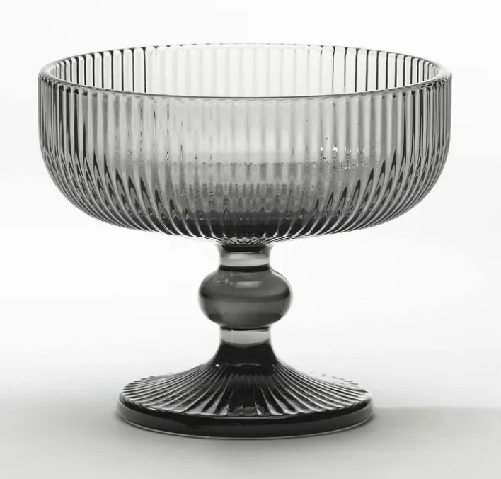 Die Sektschale RIFFLE aus grauem Glas fasst bis zu 285 ml. Aus ihr schmecken Prosecco, Sekt und Champagner ebenso gut wie leckeres Speiseeis oder auch ein frischer Obstsalat.