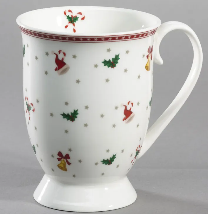 Die weihnachtliche Kaffeetasse aus der Kollektion Weihnachtsglanz by casaNOVA besteht aus dem Material New Bone China. Sie hat eine schöne Form mit leicht nach außen gewölbten Rand, der von einer schmalen Bordüre mit Sternchen verziert ist. An dem elegant geschwungenen Henkel lässt sich die Tasse gut anfassen und sicher zum Mund führen. Das mehrfarbige Muster ist gleichmäßig auf der Außenseite verteilt und wird von einem einzelnen Motiv am Innenrand der Kaffeetasse ergänzt.