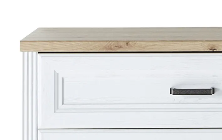 Farbe: BraunWeißDekorfarbe: EichePinieMaterial: HolznachbildungOberflächenbeschichtung: foliertOptik: Holzdekor