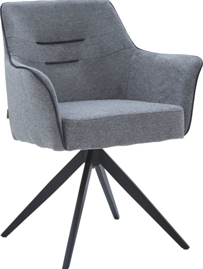 Der CASAVANTI Armlehnstuhl BLIZZARD hat eine Größe von 68 x 85 x 61 cm und kombiniert sein schwarz pulverbeschichtetes Spinngestell aus Metall mit einem angenehm gepolsterten Sitz. Bezogen mit grauer Synthetikfaser und Absetzungen in Schwarz strahlt der Armlehnstuhl Modernität aus. Der Sitz mit einer komfortablen Sitzhöhe von 51 cm ist um 360°C drehbar, wodurch das Aufstehen vom Esstisch auch ohne Sesselrücken möglich ist. Perfektioniert wird der Sitzkomfort von festen Armteilen. Mit seinem angesagten Design ist der Armlehnstuhl ideal für modern gestaltete Esszimmer und offene Wohn-Essbereiche.