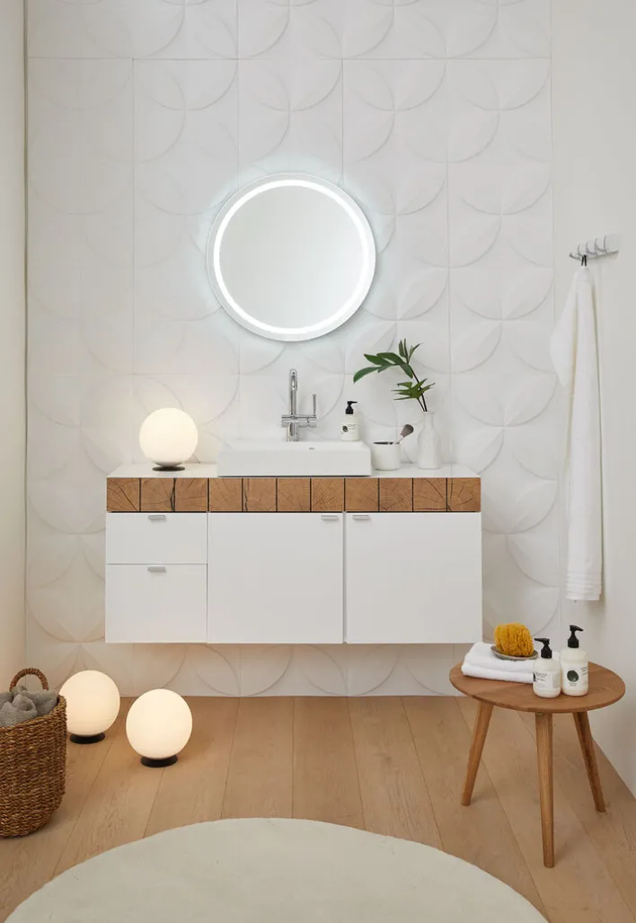 Sich im Badspiegel aus dem Hause CASAVANTI zu checken, ist dank seiner integrierten LED-Beleuchtung besonders einfach. Sie sorgt für optimale Lichtverhältnisse, die es leicht machen, jedes Detail des Gesichts genau in den Blick zu nehmen. Ein weiterer Pluspunkt des Spiegels ist seine fast schon klassische Schlichtheit, die mit einer Vielzahl von Einrichtungsstilen harmoniert. Besonders in moderne Badezimmer fügt sich der Rundspiegel mit Leichtigkeit ein.