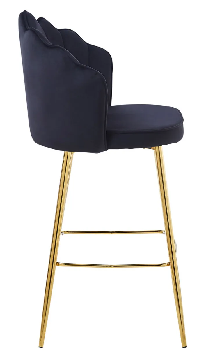 Der CASAVANTI Barhocker hat eine Größe von 52 x 100 x 54 cm. Sein solides, goldfarbiges Vierfußgestell aus Metall mit inkludierter Fußbank vereint der Barstuhl mit einem gepolsterten Sitz im Muscheldesign. Eine Kombination aus Polstersitz mit weichem Samtbezug, halbhoher Rückenlehne und Fußablage macht ihn besonders komfortabel. Der Barhocker harmoniert durch sein edles Design mit klassischen und modernen Möbeln und verleiht der Hausbar im Handumdrehen ein elegantes Ambiente, in dem sich Gäste wohlfühlen.